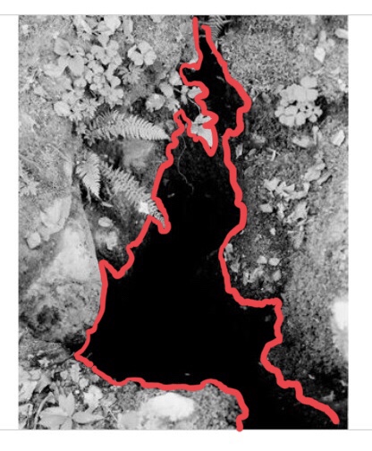 V ospredju se konstituira scena geografskih elementov, žive in nežive narave, ki jih vitalizira konstrastiranje s črnino, praznino, ki iz kadra in fragmentiranega odseka narave napravlja avtonomni mikrokozmos. Vrednota slednjega je detajl in fragment, vselej v odnosu z imaginarjem mikroskopske povečave, o kateri govori že G. Bachelard v Poetiki prostora (natančneje, v poglavju o miniaturi). Tam je mogoče zaslediti: “Tako je učeni botanik v cvetu našel miniaturo zakonskega življenja, začutil je nežno toplino dlačja, videl je mrežo, ki ziblje zrno. Iz skladnosti oblik je sklepal o udobju domovanja.” Lahko bi rekli, da je to mesto estetike golemu očesu nevidnega. Božja kreacija za človekovim hrbtom. Seveda, izključno panteističnega boga, ki se kaže v redu narave. Ali drugače, mesto božje geometrije in lepote variabilnih form. Pogled, ki ga konstituira tovrstna scena je predvsem pogled enciklopedičnega sveta botanika in pa fantastična topologija, ki ga pospremlja — topologija rojstva moderne znanosti.